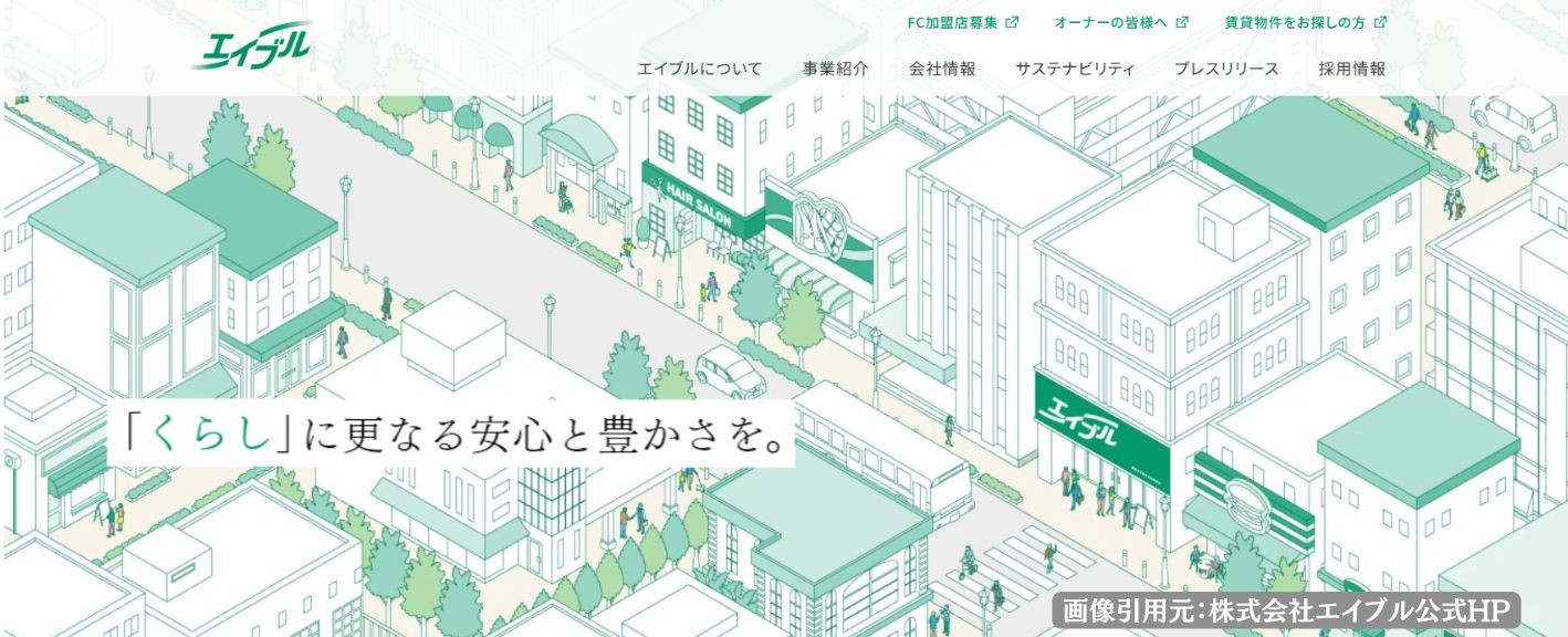 株式会社ライフイン24と関わりのある企業のひとつとして、全国規模で不動産サービスを展開する「株式会社エイブル」を紹介します。